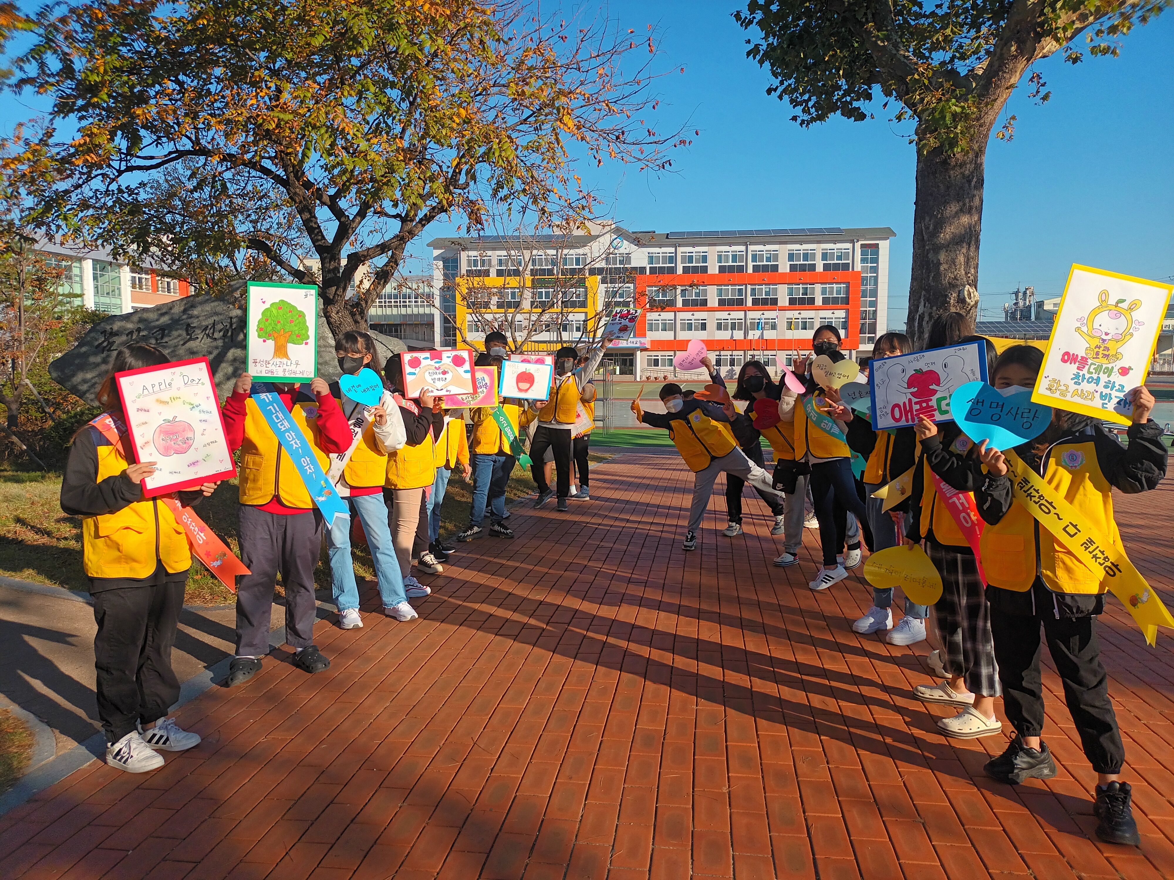 ▣ 이번 행사는 전교학생회와 또래상담동아리가 중심이 되어 진행하였다. 애플데이와 함께하는 생명존중 캠페인에 참여한 6학년 또래상담동아리 학생(진○○)은“애플데이 행사 포스터 및 피켓 등을 손수 제작하고 사과와 함께 애플데이 엽서를 전달하는 과정에서의 어려움도 있었으나 사이가 나빠진 친구에게 뿐만 아니라 교내 학교지키미 선생님 등 평소 고마움을 표현하지 못했던 분들께 감사의 마음을 전할 수 있는 기회가 되어 뿌듯했습니다. 생명존중은 스스로를 사랑하는 마음을 가지는 것에서부터 시작되며 자신을 사랑하듯 친구를 사랑함으로써 우리 모두가 행복한 학교가 되었으면 좋겠습니다.”라고 소감을 밝혔다.