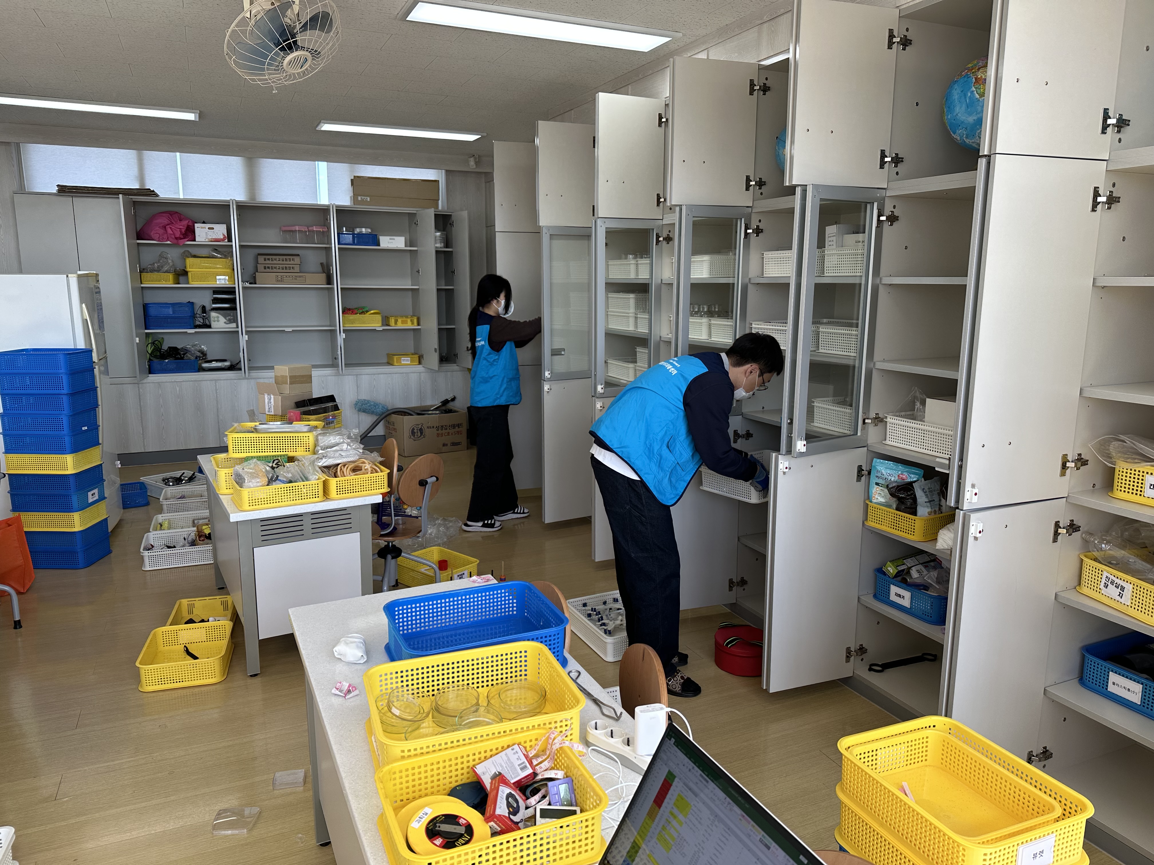 이번 과학실 관리 지원은 과학 실험기구에 새로운 라벨링 부착과 오래된 기자재의 정리를 통하여 담당 교사와 학생들이 해당 기구를 쉽고 안전하게 찾아볼 수 있도록 실시되었다.