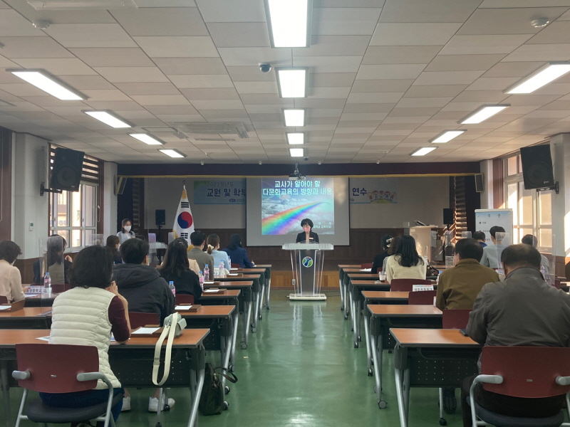 □ 예천교육지원청(교육장 권혜자) 2022. 10. 19.(수) 다문화 학생에 대한 이해 제고 및 상호 존중 의식을 함양하고 올바른 다문화 교육 역량 강화를 위하여 학부모와 교원을 대상으로 연수를 실시했다.