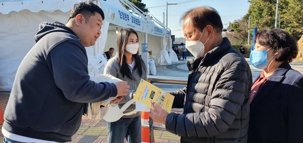 [금요저널] 이천시는 이천쌀문화축제장을 찾아가 자동차 소유자의 법적 의무사항인 의무보험 가입을 독려하고 종합검사 불이행으로 인한 피해를 예방하기 위해 실생활에 자주 사용하는 예쁜 에코백을 제작, 배포를 통한 적극적인 홍보에 나섰다.