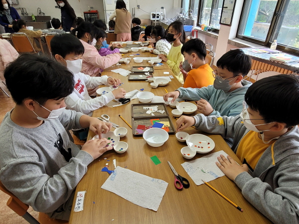 □ 체육활동이 끝나고 학교로 찾아가는 도자기 디자인 체험을 실시했다. 체험에 참가한 학생들은 특수 색종이 등의 재료와 여러 도구를 활용하여 자신만의 도자기를 디자인했다. 친구들과 함께하는 체험을 통해 추억을 만들고 원만한 교우관계를 형성할 수 있었다.