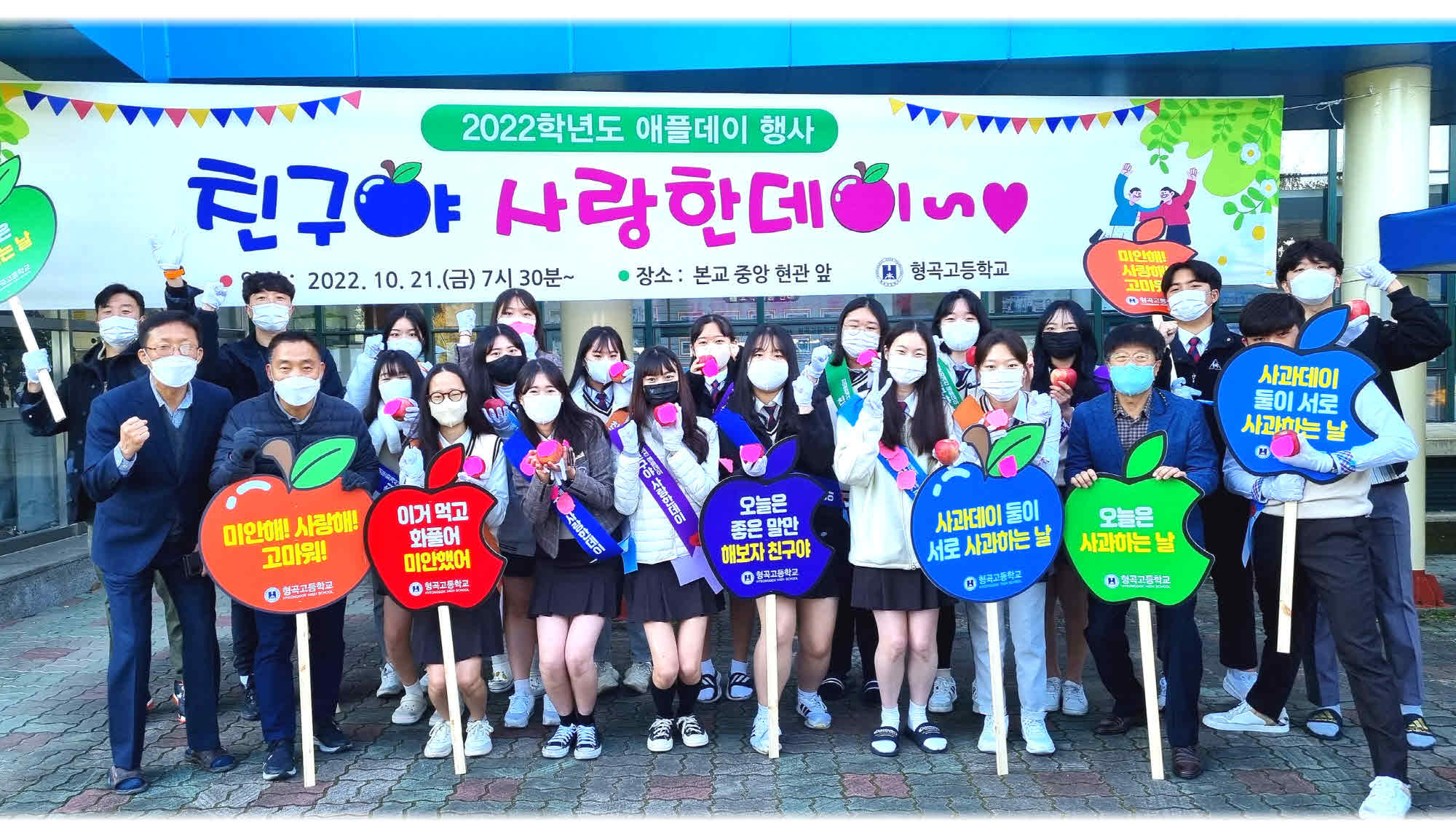 □ 구미시 형곡고등학교(교장 서충교)는 21일(금), 2학기 생명사랑 의식 함양과 생명존중 문화 확산을 위한 ‘친구 사랑 애플데이’를 실시했다.