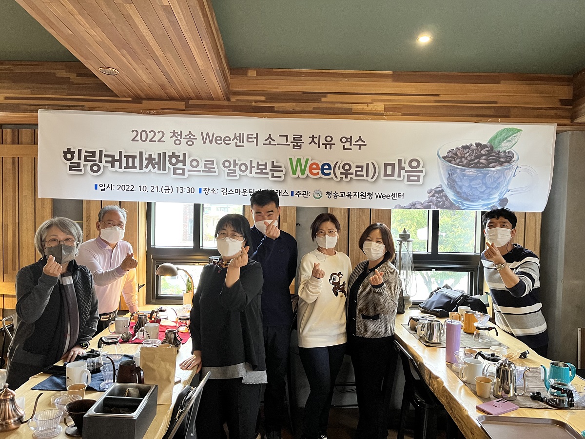 □ 청송교육지원청 Wee센터는 21일 관내 초·중·고 상담업무담당자 및 전문상담인력을 대상으로‘2022 청송 Wee센터 소그룹 치유 연수 『힐링커피체험으로 알아보는 Wee(우리) 마음 연수』를 실시했다.