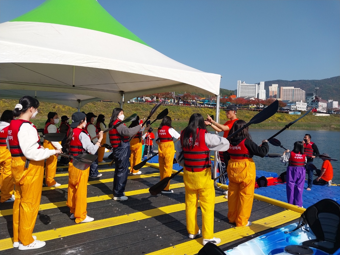 안동여자중학교(교장 권구석) ‘단양 역사 문화탐방 체험활동’ 학생 30명이 10월 22일(토)에 단양 역사문화탐방으로 ‘온달과 평강공주 사랑이 야기’가 담긴 온달체험관과 단양의 메카 수상스포츠대회 프로그램에 참여하여 행복한 주말 체험을 하였다.
