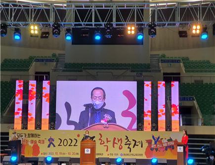 □ 이순호 교육장은 코로나로 인하여 2년 동안 멈춰있던 안동학생축제를 개막하게 되어 무척이나 기쁘다는 환영의 말씀을 전했고 학생들이 꿈을 찾고 끼를 키우는 소중한 경험을 공유하고 청소년의 문화와 예술에 대한 이해와 공감을 통해 학교폭력 없는 건전한 학교 문화를 만드는데 노력할 것을 당부했다.