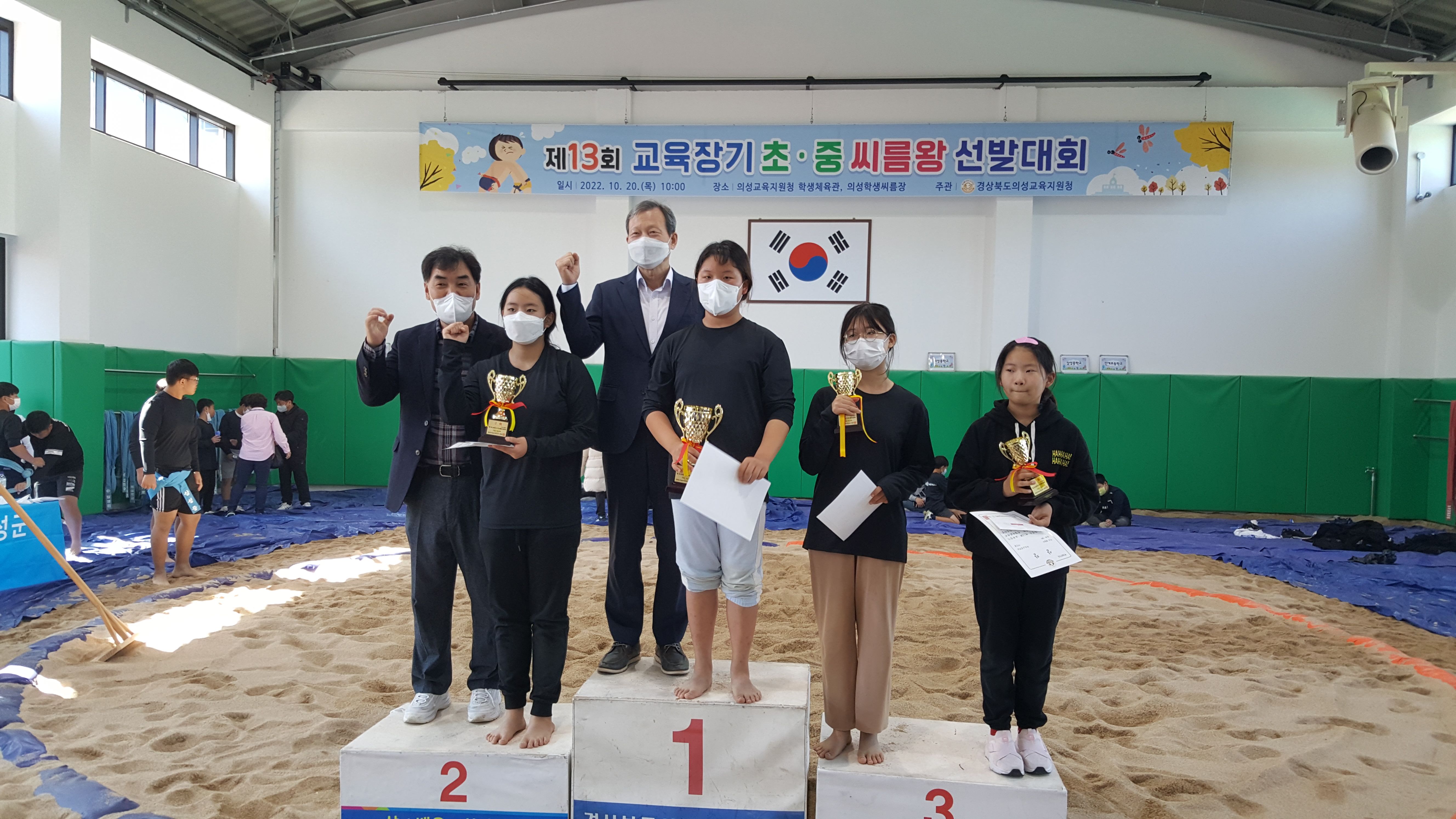□ 교육장기 초·중 씨름왕 선발대회는 우리 고유 민속경기인 씨름을 보존하고 전승하며 체육 인구의 저변을 확대하고 우수 선수의 조기 발굴을 위해 매년 의성교육지원청 주관으로 개최되고 있다. 이번 대회는 의성지역 초등학교 및 중학교에서 많은 학생들이 각자의 학교를 대표해 출전하였다.