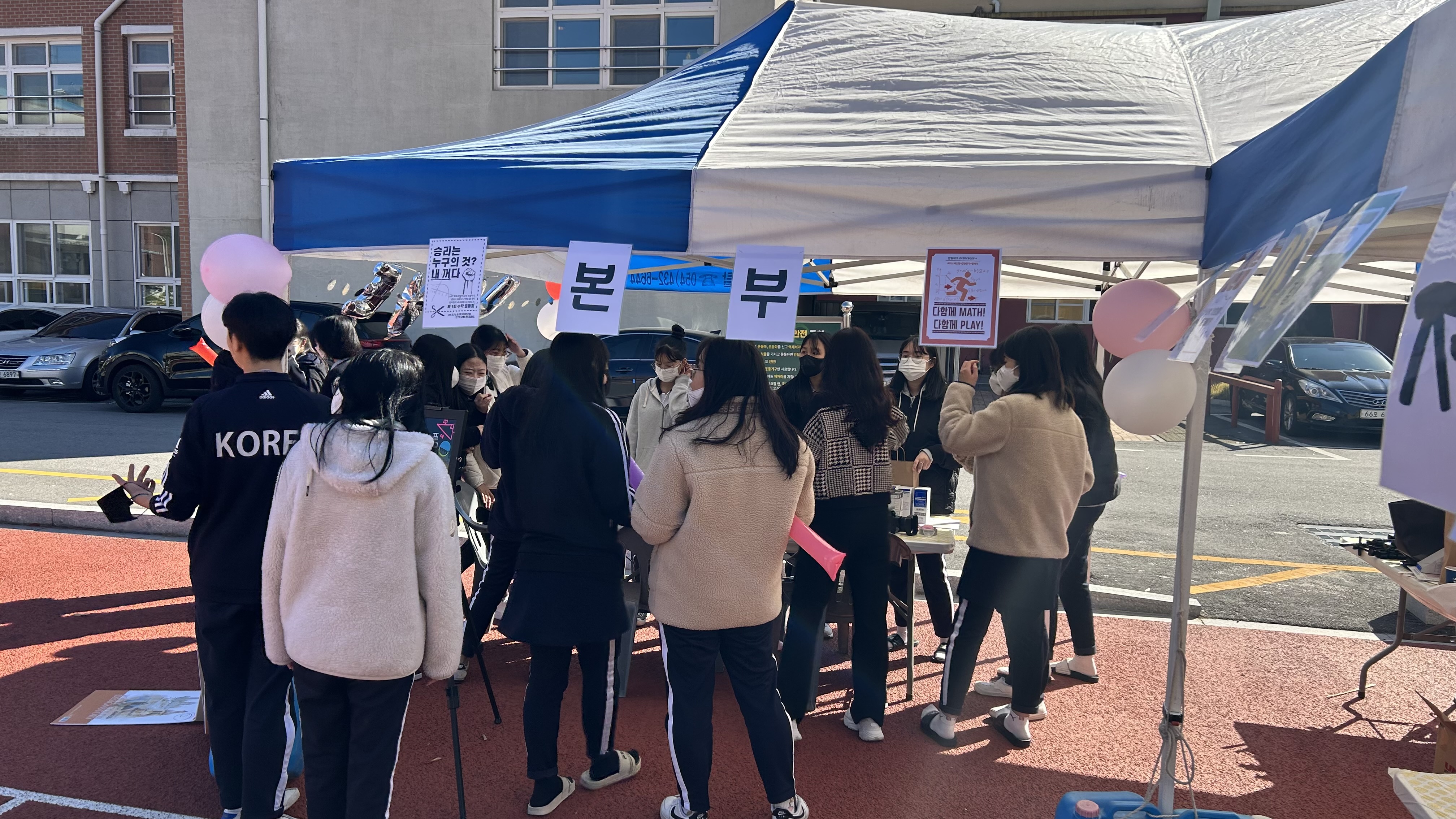 그 외에도 상, 중, 하 문제 종이가 담긴 캡슐을 교내에 숨겨놓아 학생들이 발견한 캡슐 속 문제를 풀고 상품을 받아 가는 보물찾기, 수학 기호를 얼굴 및 신체에 그려주는 페이스페인팅 등 학생들의 넘치는 끼와 재능을 보여 줄 수 있는 다양한 체험활동을 진행하였다.