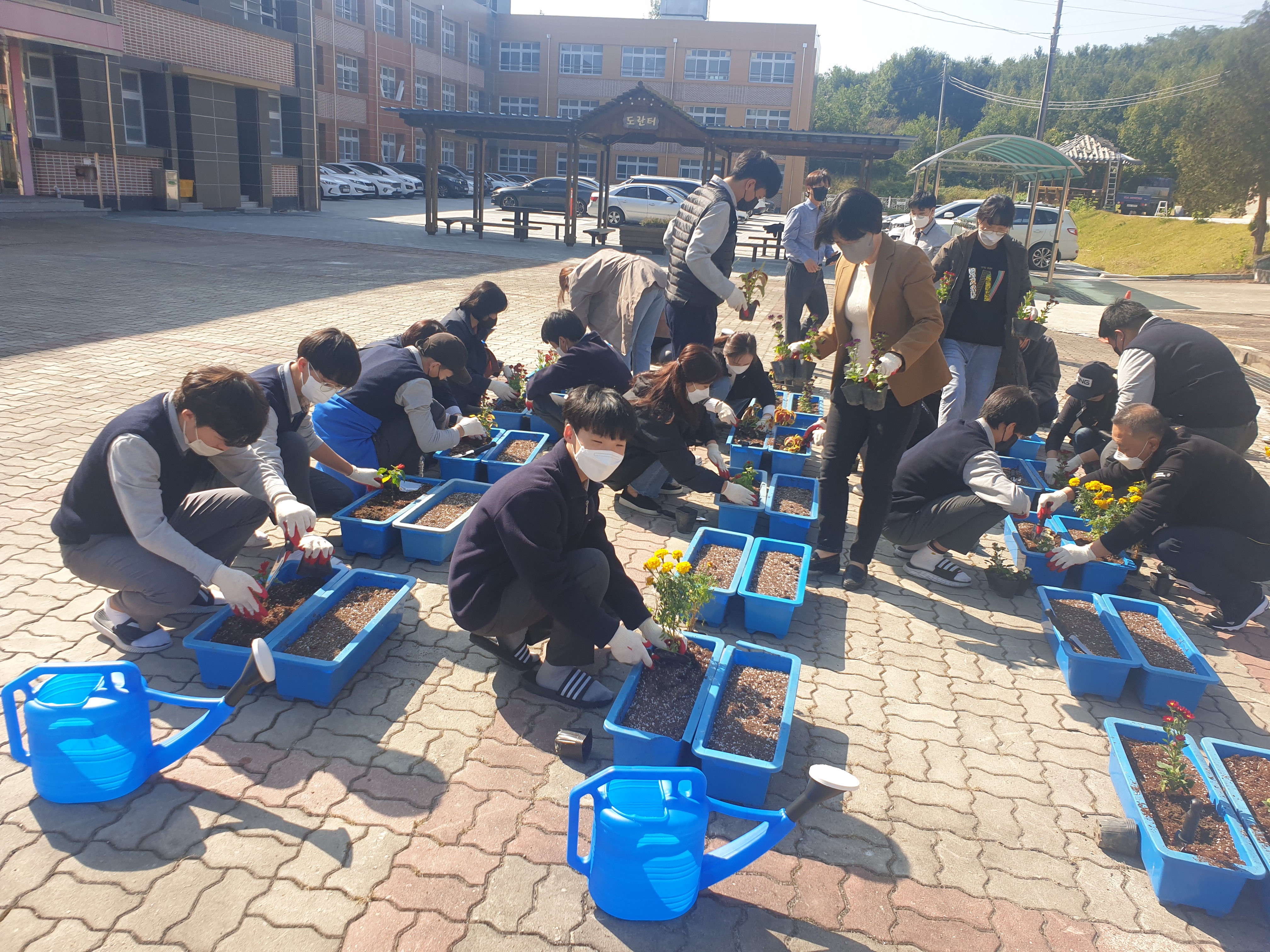 김천시 김천중앙중학교(교장 노광호)는 10월 12일(수) 13:30부터 교정에서 학생 17명과 학부모 17명이 참여하여 학부모학교참여 학교꽃 가꾸기를 실시하였다. 또한 14:00부터 학부모 15명이 참여하여 한지공예 학부모연수 프로그램을 운영하였다.