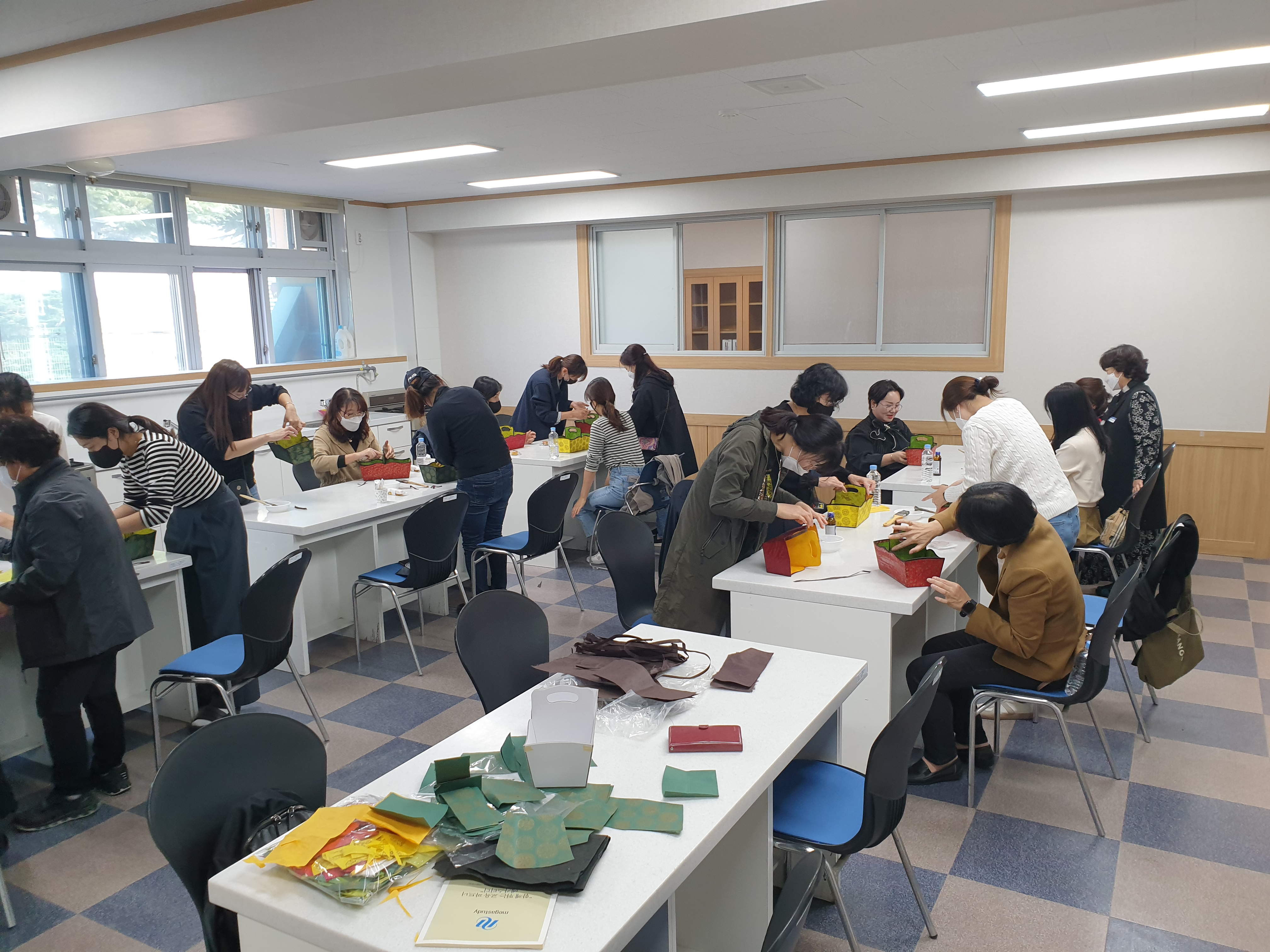 이번 행사는 학부모학교참여와 학부모연수의 일원으로 마련되었다. 학생부장과 행정실장이 주도하여 진행된 학교꽃 가꾸기는 학부모와 학생들이 2인 1조로 과꽃과 사루비아 등의 가을 화초를 화분에 심고 물을 주는 활동이었다. 이후 이어서 진행된 학부모연수는 조계희 강사님을 초빙하여 가사실에서 다용도 수납함 만들기를 하면서 전통공예를 체험해보는 활동이었다. 이 연수는 진행되는 동안 학부모간 소통과 교사와 상담이 동시에 이루어지는 특별한 프로그램이었다.