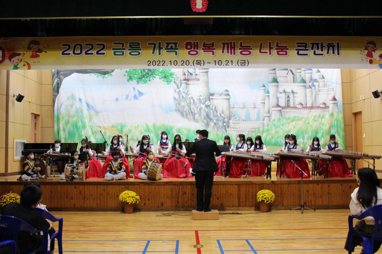 □ 금릉초등학교(교장 황연옥)는 10월 20일(목), 10월 21일(금) 이틀간 본교 연화관에서 학생, 교직원이 함께하는 ‘금릉 가족 행복 재능 나눔 큰잔치’를 개최하였다.