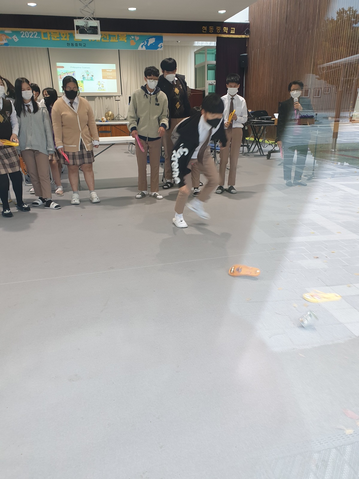 - 강의는 ‘떠나요! 세계속으로 다문화 감수성 UP!’이라는 슬로건으로 시작하여 지도에서 필리핀 위치 찾기, 필리핀 사회의 이해, 문화의 특이성, 필리핀의 전통 놀이 등을 알아보고 직접 놀이 형식으로 직접 체험하는 형식으로 이루어져 모든 학생들이 굉장히 즐거워 하며 참여하였다.