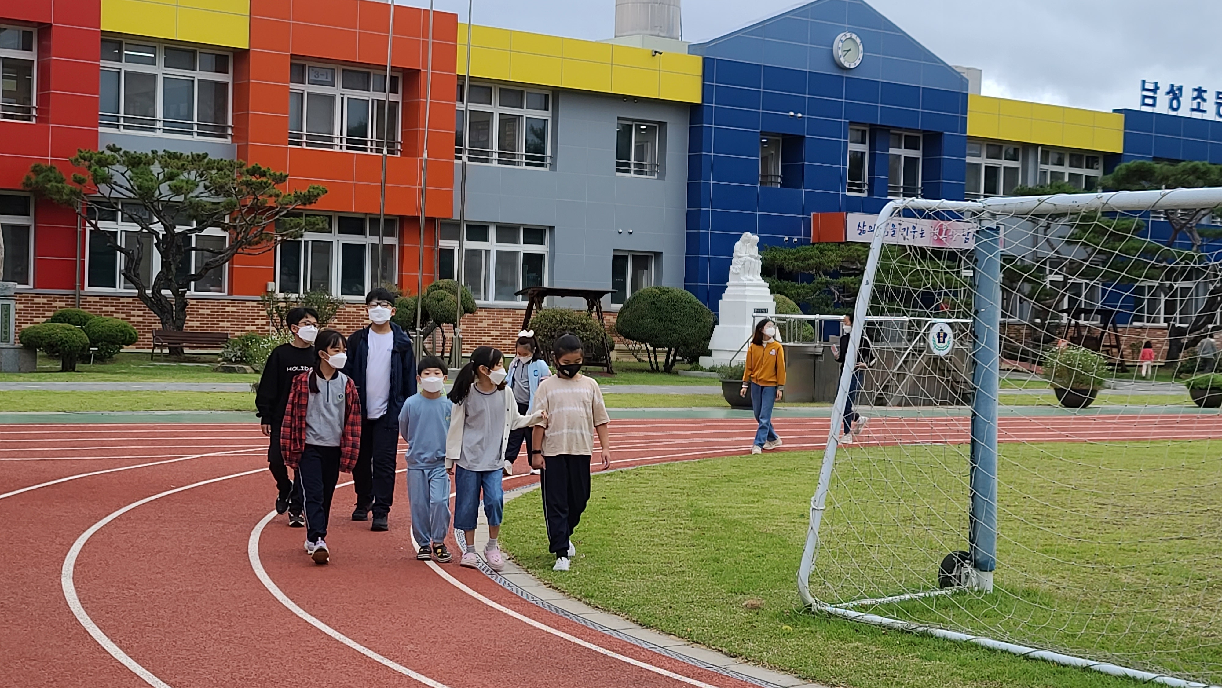 □남성초등학교(교장 최병석)는 학생들의 건강 체력 증진과 민주적 시민 역량 함양을 위한 교육활동으로 매일 아침 교직원과 학생들이 자발적으로 참여하는 운동장 걷기를 추진하고 있다.