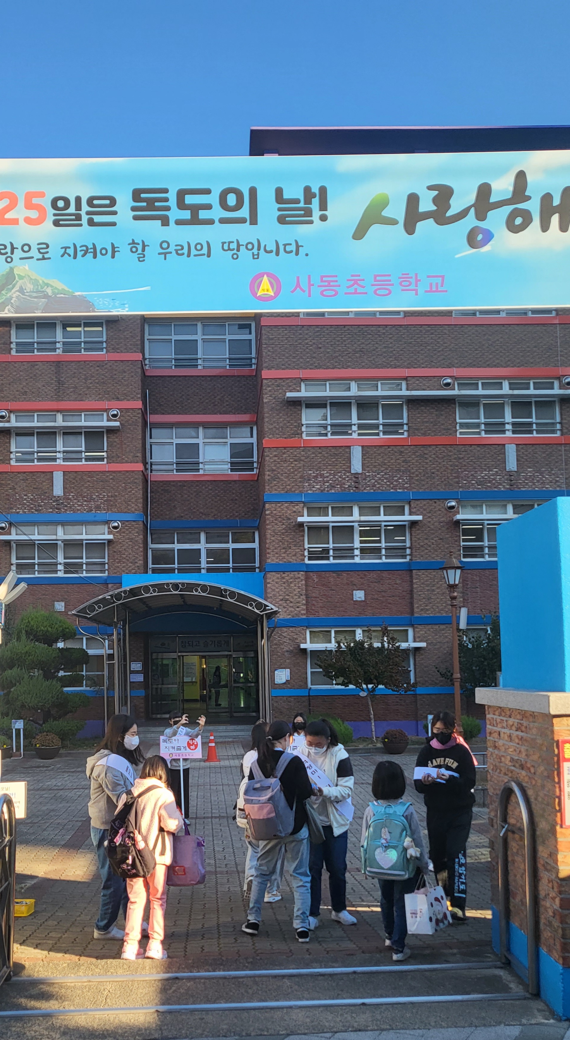 경산시 사동초등학교(교장 송명호)는 ‘독도의 날’을 맞이하여 독도사랑 및 독도홍보 활동을 실시하였다. 독도가 대한민국의 고유한 영토임을 알리고 대외적으로 독도 수호 의지를 표명하기 위한 독도의 날(10월 25일)인 화요일 아침, 독도지킴이동아리 회원들을 중심으로 활동을 전개하였다.