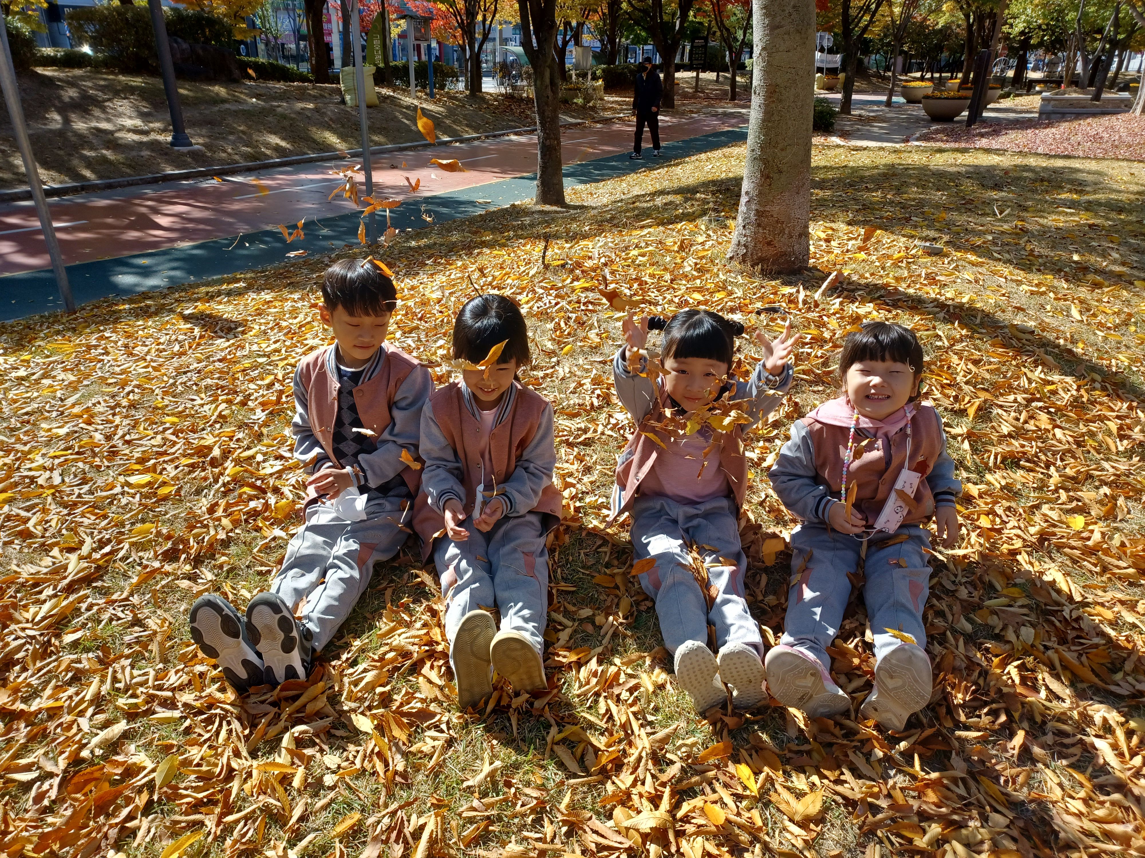 예쁜 케이크와 고소하게 구워져 나온 쿠키를 상자에 정성스럽게 담은 후에는 체험장 옆에 있는 공원으로 산책을 나갔다. 알록달록 물든 가을 나무 아래서 수북이 쌓인 나뭇잎을 밟아보고 하늘로 날려 나뭇잎 비를 만들어보기도 하고 놀이터에서 신나게 뛰어놀며 즐거운 한 때를 보냈다.