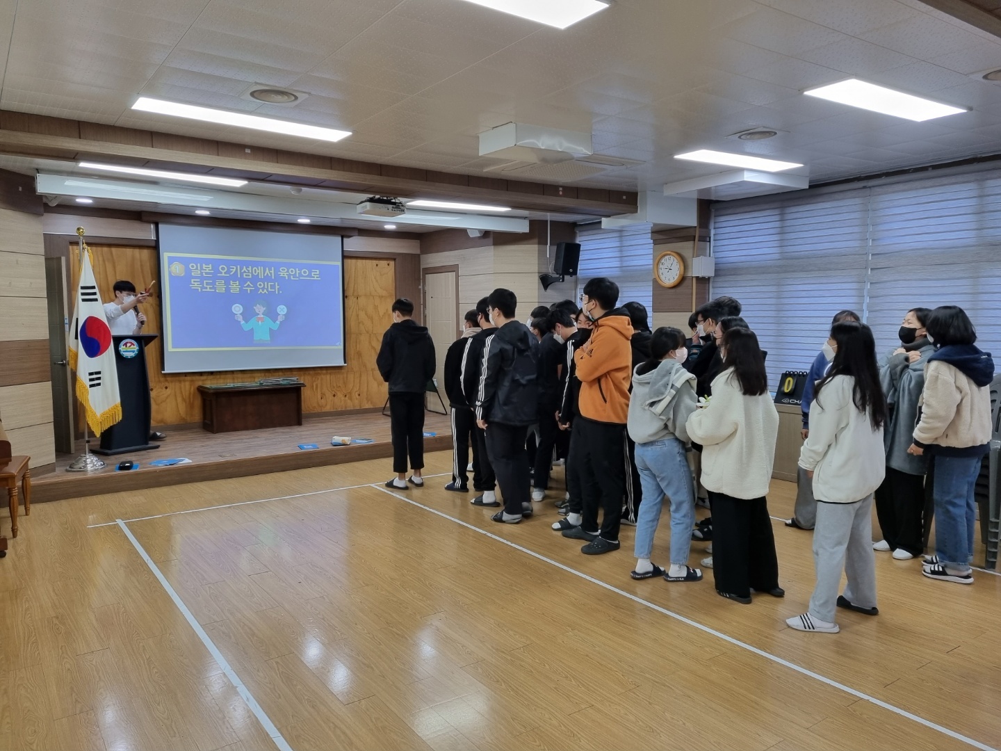 □ 석포중학교(교장 전병철)는 10월 25일(화) 독도의 날을 맞이하여 본교 강당에서 전학생을 대상으로 독도 퀴즈 대회를 실시하였다.