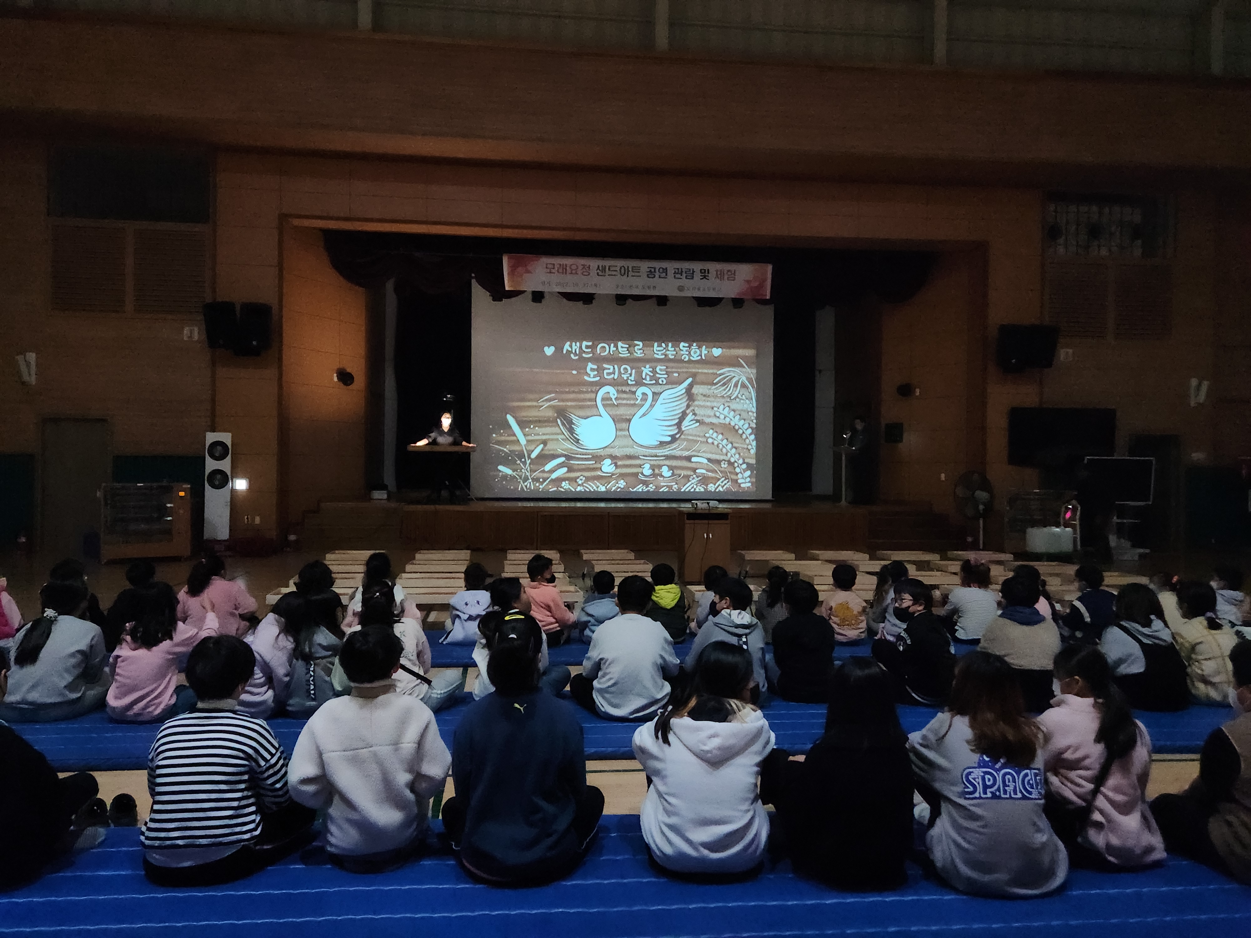 샌드아트 공연을 관람한 설OO 학생은 “샌드아트로 다양한 모습의 동물들을 보니 신기했고, 모습이 달라도 모두 친구가 될 수 있다는 것을 느꼈다. 또 아낌없이 주는 나무를 멋있는 샌드아트로 관람하니 부모님과 선생님에 대한 감사한 마음이 생겼고, 관람 후에 직접 체험해볼 수 있어서 행복했다.”라는 소감을 밝혔다.