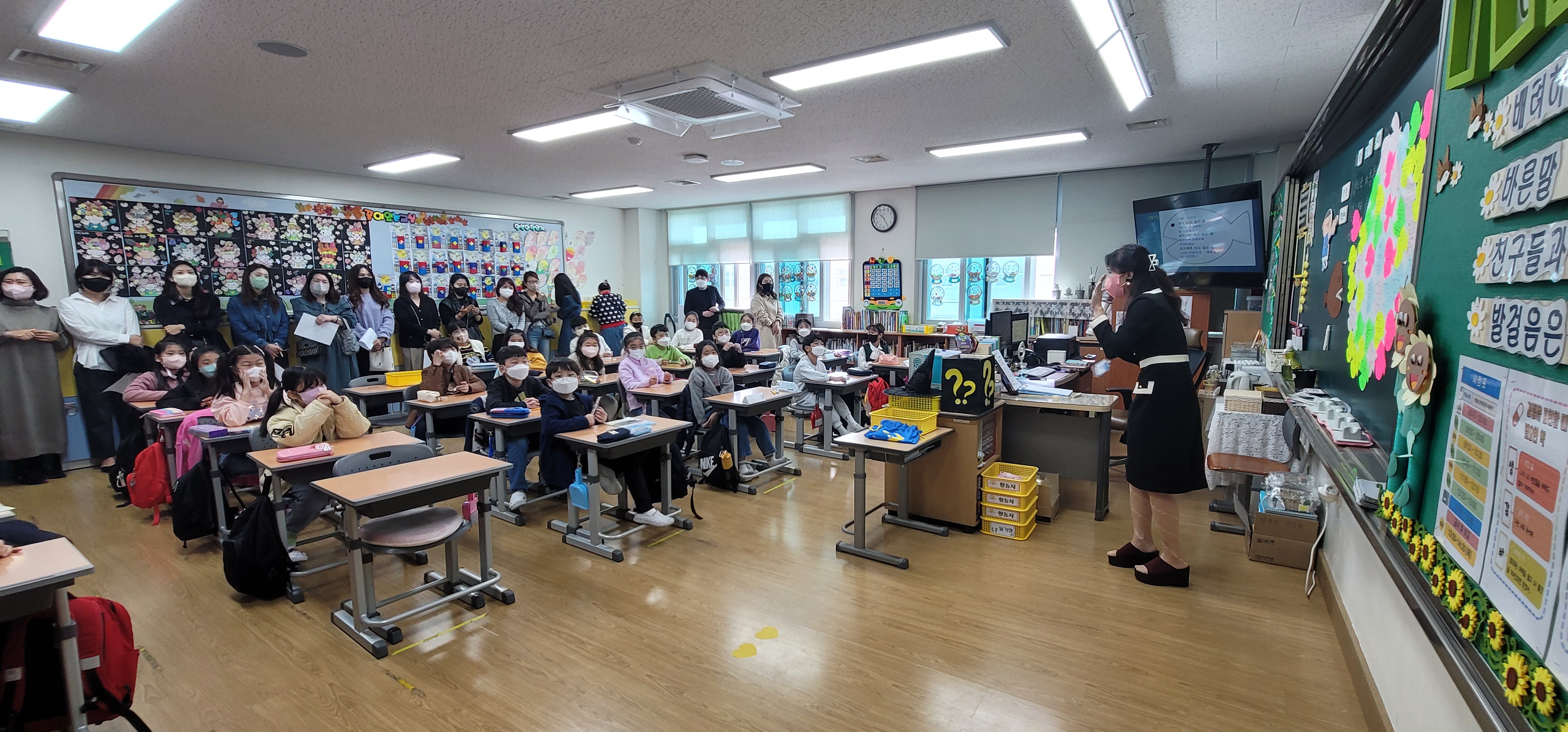 2교시에 담임선생님들과 학생들의 활기찬 수업이 진행되었고, 3교시에 는 전담 및 비교과 선생님들의 생동감 넘치는 수업이 이루어졌다. 수업을 참관한 3학년 자녀를 둔 학부모님은 “입학 후 3년간 코로나로 인해
