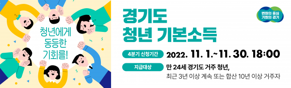 [금요저널] 청년기본소득 4분기 대상자에 대한 신청접수가 11월 1일부터 11월 30일까지 진행된다.