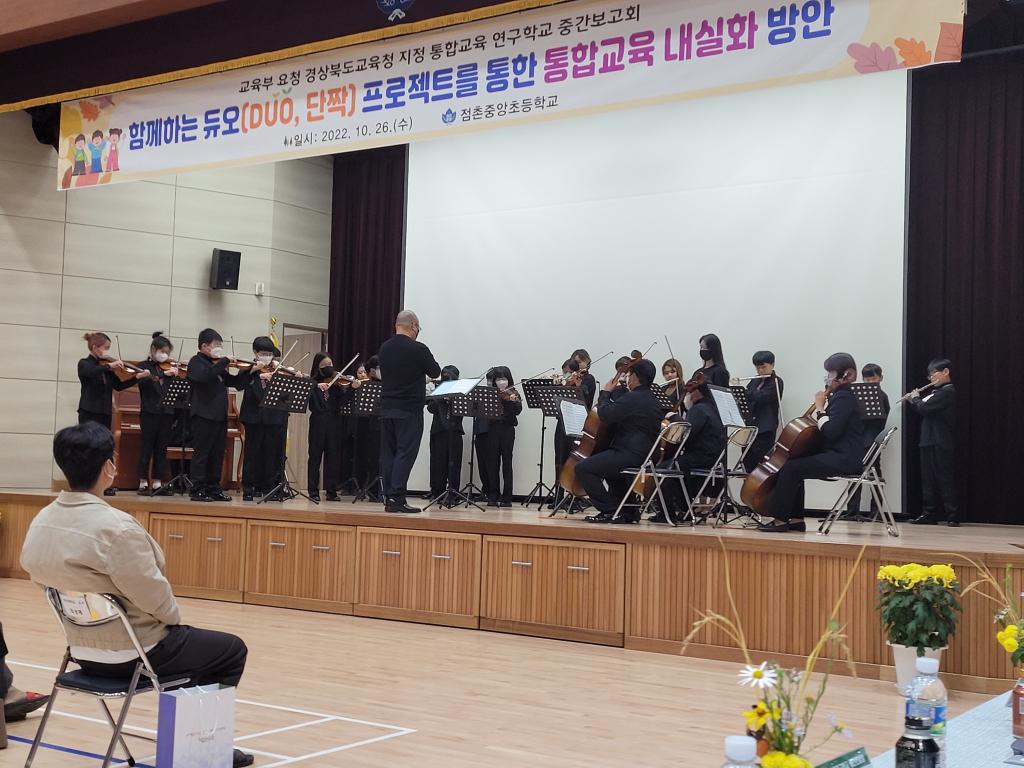 특히 통합교육 연구학교(정다운학교)의 성과를 보고하는 운영보고회에서는 학교의 자랑, 단짝 오케스트라가 ‘아리랑’ 외 1곡을 멋지게 연주해 참석한 선생님들의 눈길을 끌었다. 또한 이후 진행된 운영 보고에서는 점촌중앙초등학교가 통합교육에 얼마나 진심인지 보여주었다.