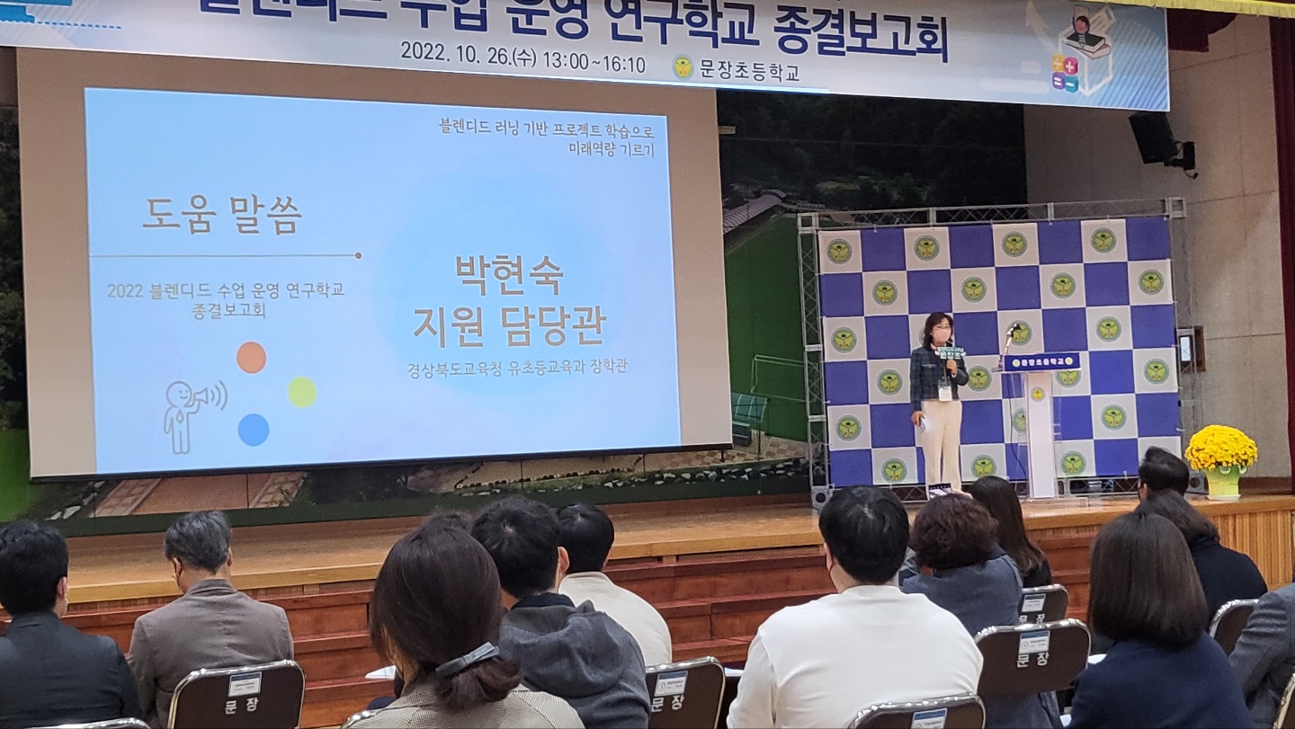 □ 이날 박현숙 경상북도교육청 장학관은 “각 가정에서 가을맞이 환기를 하는 것처럼 본 종결보고회가 선생님들의 일상 수업 습관들을 환기시키는 자리가 되었기를 바란다.”며 인사말을 전했다.