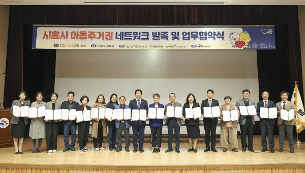 [금요저널] 시흥시주거복지센터와 시흥시정왕종합사회복지관, 초록우산어린이재단 경기아동옹호센터가 주관하는 ‘시흥시 아동주거권 네트워크 발족 및 업무 협약식’이 지난 27일 시청 늠내홀에서 개최됐다.