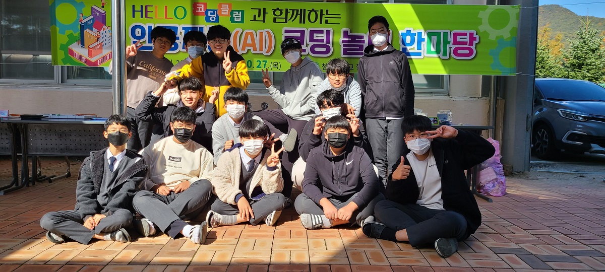 □ 청송중학교(교장 조충래)는 10월 한 달을 ‘소프트웨어와 인공지능 교육의 달’로 지정하여 전교생과 전교직원을 대상으로 다양한 소프트웨어 및 인공지능 특별 체험 행사를 실시하였다. ‘인공지능(AI) 융합 교과 연계 교육’이라는 주제로 진행된 이번 행사는 교내 AI 코딩 동아리인 ‘헬로! 코딩클럽’ 회원들이 주축이 되어 10월24일부터 27일까지 매일 점심시간 동안 재능기부 봉사 활동으로 이루어졌다.