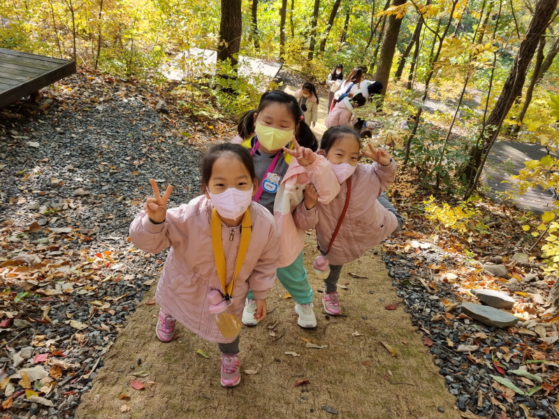 인평초등학교병설유치원(원장 박정순)은 10월 27일(목) 원아 9명을 대상으로 가을 숲의 풍경을 감상하고 자연과 어우러지는 경험을 제공하고자 국립칠곡숲체원으로 체험학습을 계획하였다.
