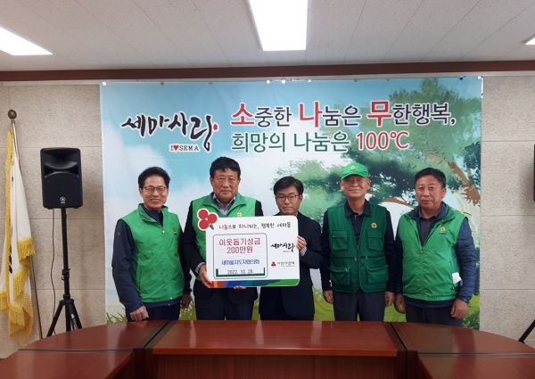 한범수 새마을지도자협의회장은 “아무리 조그마한 것이라도 나누면 그 행복이 두 배가 된다는 말이 있듯이 더 많은 이웃과 단체들이 기부와 나눔에 동참해 모두가 행복하기를 바란다”고 말했다.