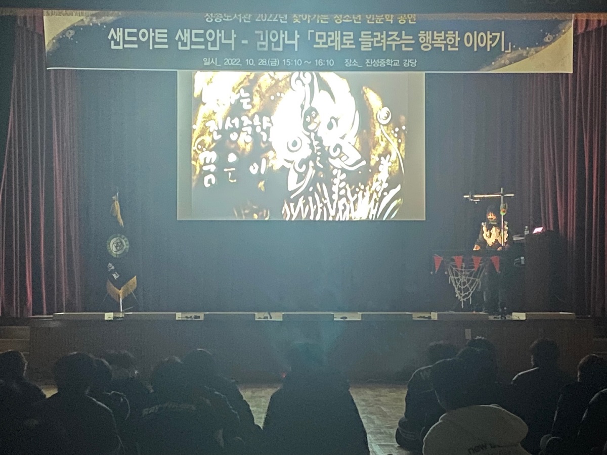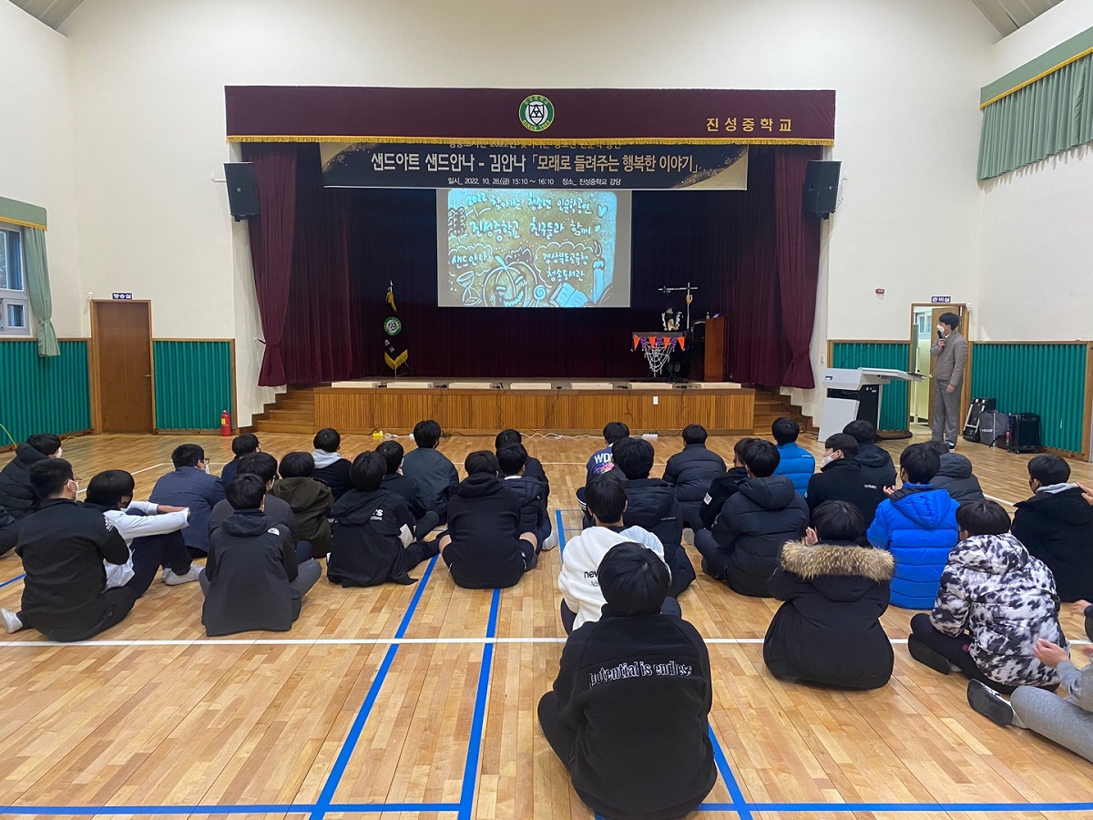 이번 공연은 ‘모래가 들려주는 행복한 이야기’라는 주제의 샌드아트 공연으로 자신의 선택을 믿고 최선을 다하는 꿈과 비전을 심어주는 이야기 ‘꽃들에게 희망을’과 여행작가의 책 내용을 들려주는 감성 스토리텔링 ‘바람이 분다 당신이 좋다’, 학생들이 직접 참여하는 샌드아트 특별체험으로 구성하여 아이들의 창의적인 사고를 기르고 따뜻한 감성을 키우는 의미 있는 시간이었다.