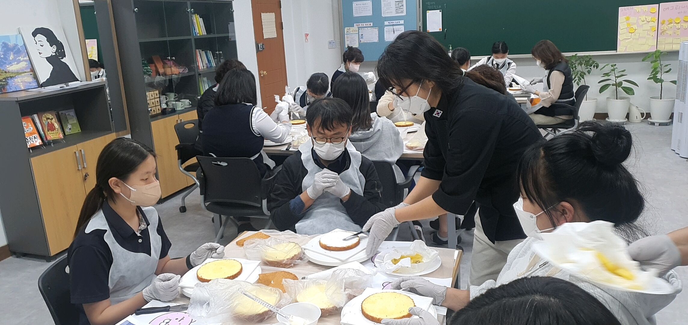 이번 사제동행 체험은 교육복지우선지원사업의 일환으로 운영되었고 선생님과 학생들이 대화를 나누며 마지막 활동으로 개성있는 캐릭터 케이크를 완성하였다.