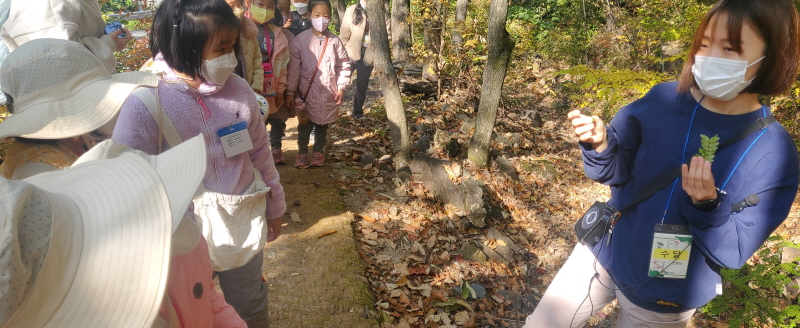□ 10월 7일(목) 숭산초등학교병설유치원(교장 전영배)에서는 국립칠곡숲체원에서‘숲 체험학습’을 실시하였다.