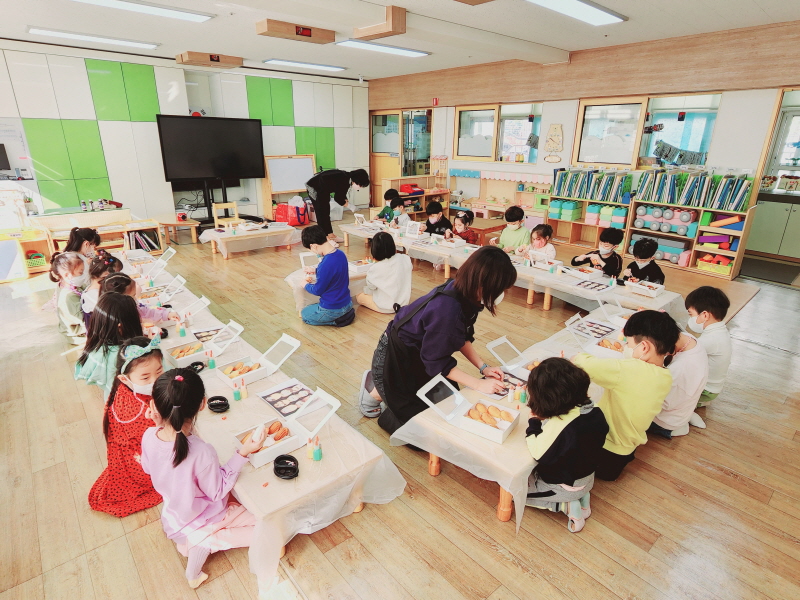 각 유치원에서는‘나만의 만들렌 만들기’활동을 하면서 유아 각자 개성 있는 빵을 꾸미고 만들어보는 시간을 가졌으며, 우리나라 전통 음식인 약밥에 대해서 이야기 나누고 가족과 함께 나눠 먹을 수 있는 약밥을 담는 활동도 이루어졌다.