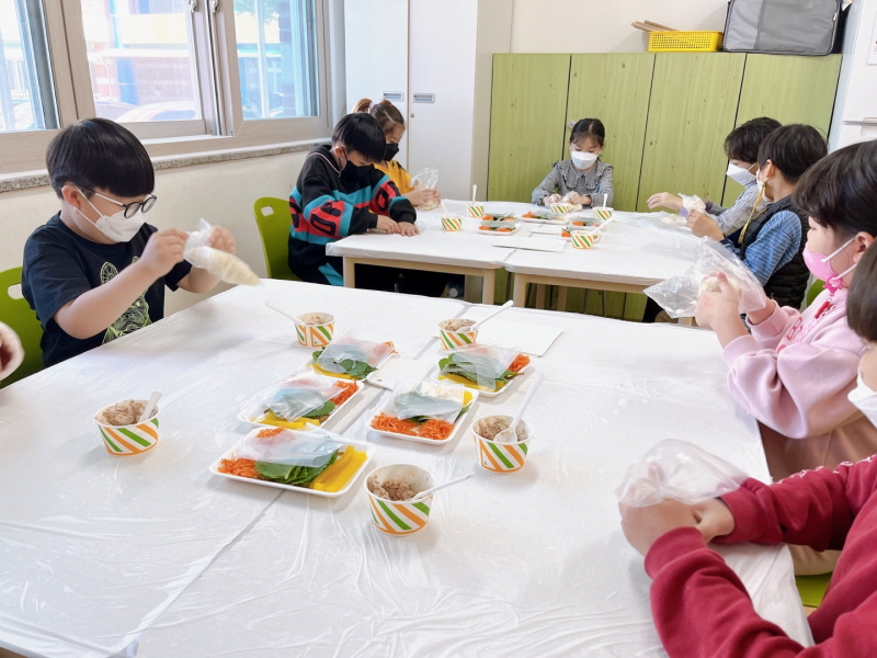 □ 참여하는 아이들이 함께 요리 재료를 다듬고, 음식을 만드는 과정을 함께 하면서 재미있어 하고 각자의 역할을 하면서 협동심을 배우는 시간을 가지고 있다. 또한 자신이 직접 만든 음식을 가족들과 함께 먹으며 자랑도 하고 이야기도 하면서 소통의 시간을 가질 수 있다.