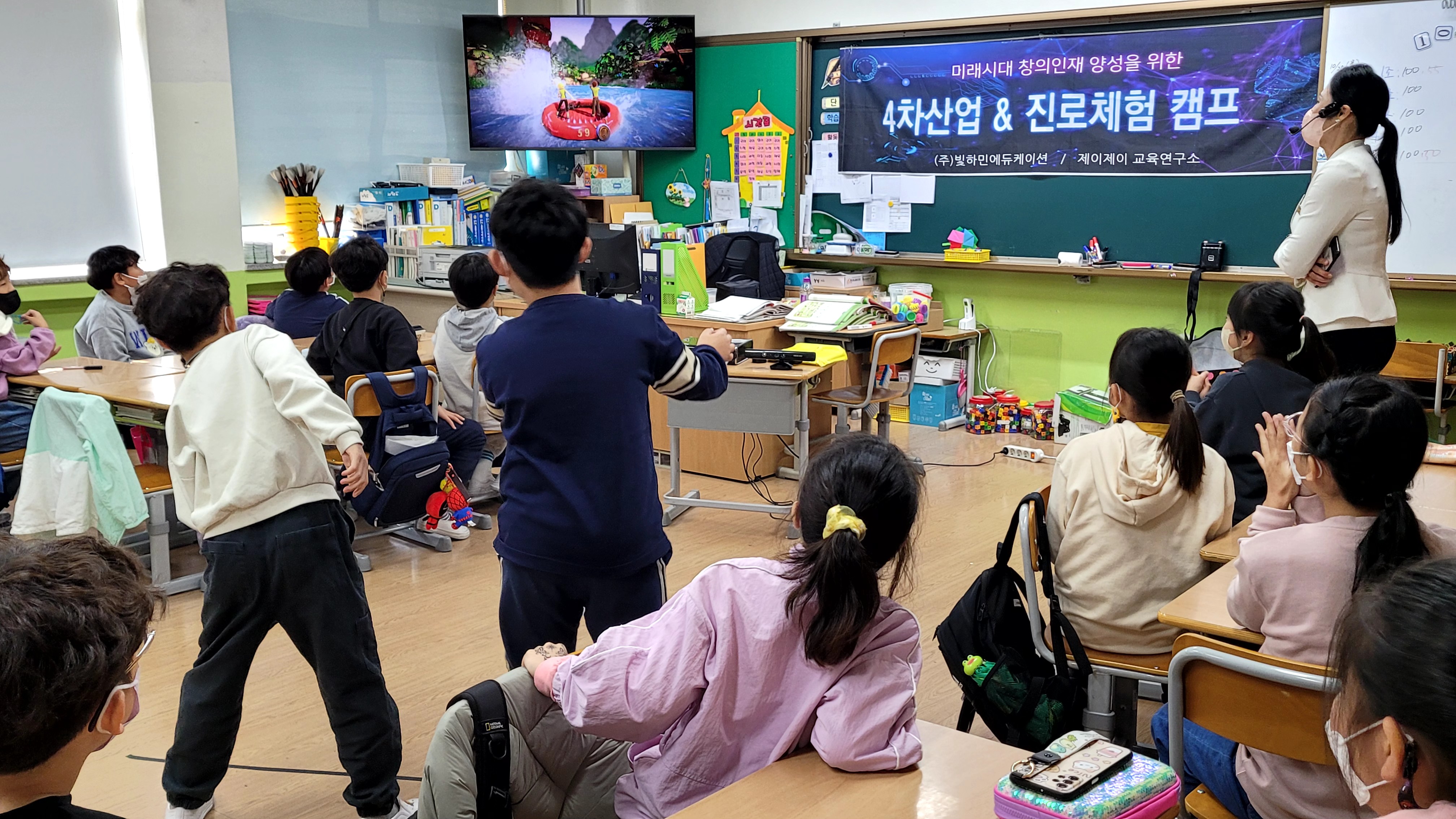 □ 김천부곡초등학교(교장 한화균)는 10월 27일(목) 3학년 전체 학생이 참여하는 미래시대 창의인재 양성을 위한 4차 산업 직업체험 진로캠프를 실시하였다.