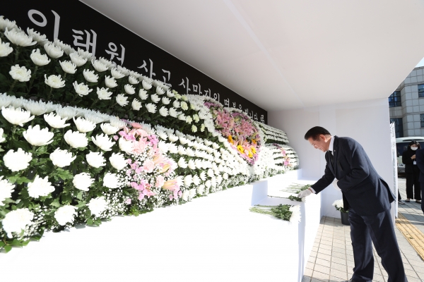 [금요저널] 최대호 안양시장은 31일 이태원 핼러윈 축제 사고로 인해 숨진 시민을 추모하기 위해 안양시청 합동분향소를 찾아 깊은 애도를 표했다.