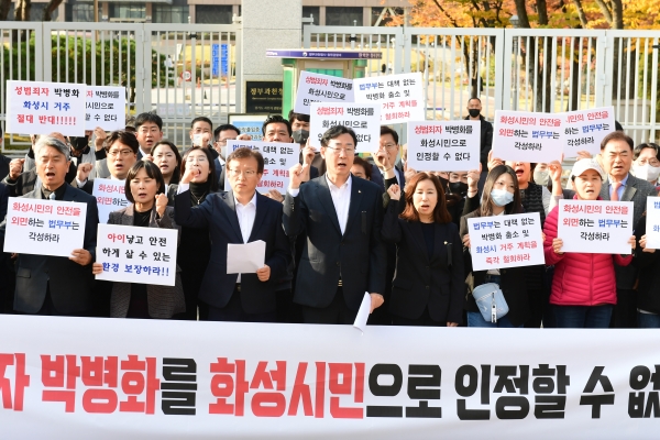 [금요저널] 정명근 화성시장이 31일 법무부를 찾아가 ‘연쇄 성폭행범 화성 거주 반대 성명서’를 발표하고 법무부의 졸속행정을 규탄함과 동시에 시민안전을 위한 제도적 안전장치 마련을 촉구했다.