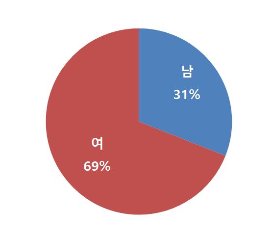 연령대별 분석결과 인구수 대비 사고 비율은 70대, 80대, 90세 이상, 60대 순으로 나타났으며 성별 분석결과 남녀비율이 31:69로 여성 교통사고 피해자가 2.2배 더 많았다.