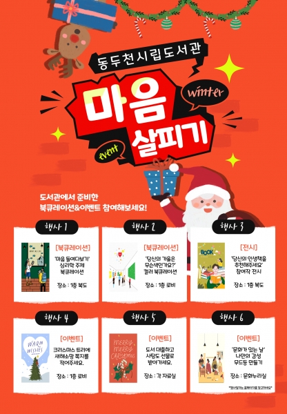 도서관 관계자는 “겨울과 연말을 맞이해 도서관에서 진행하는 행사를 통해 한 해를 돌아보고 스스로의 마음을 살펴보길 바란다 시립도서관에서의 시간이 따뜻한 기억으로 남길 바라며 내년에도 다채로운 행사로 시민들에게 다가가겠다”고 전했다.