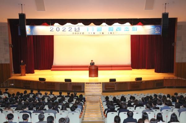 [금요저널] 안양시가 1일 시청 강당에서 열린 월례조회에서 2022년 하반기 적극 행정 우수공무원을 시상했다.
