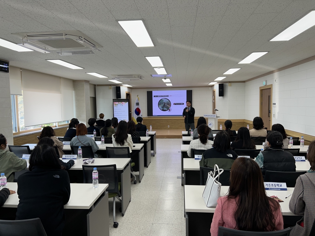 □ 경상북도문경교육지원청(교육장 김현오)은 11월 1일 2층 중회의실에서 관내 공․사립유치원 방과후과정 담당자 30여 명을 대상으로 「건강하고 안전한 유아 지원을 위한 심폐소생술 및 응급처치 교육」을 실시하였다.