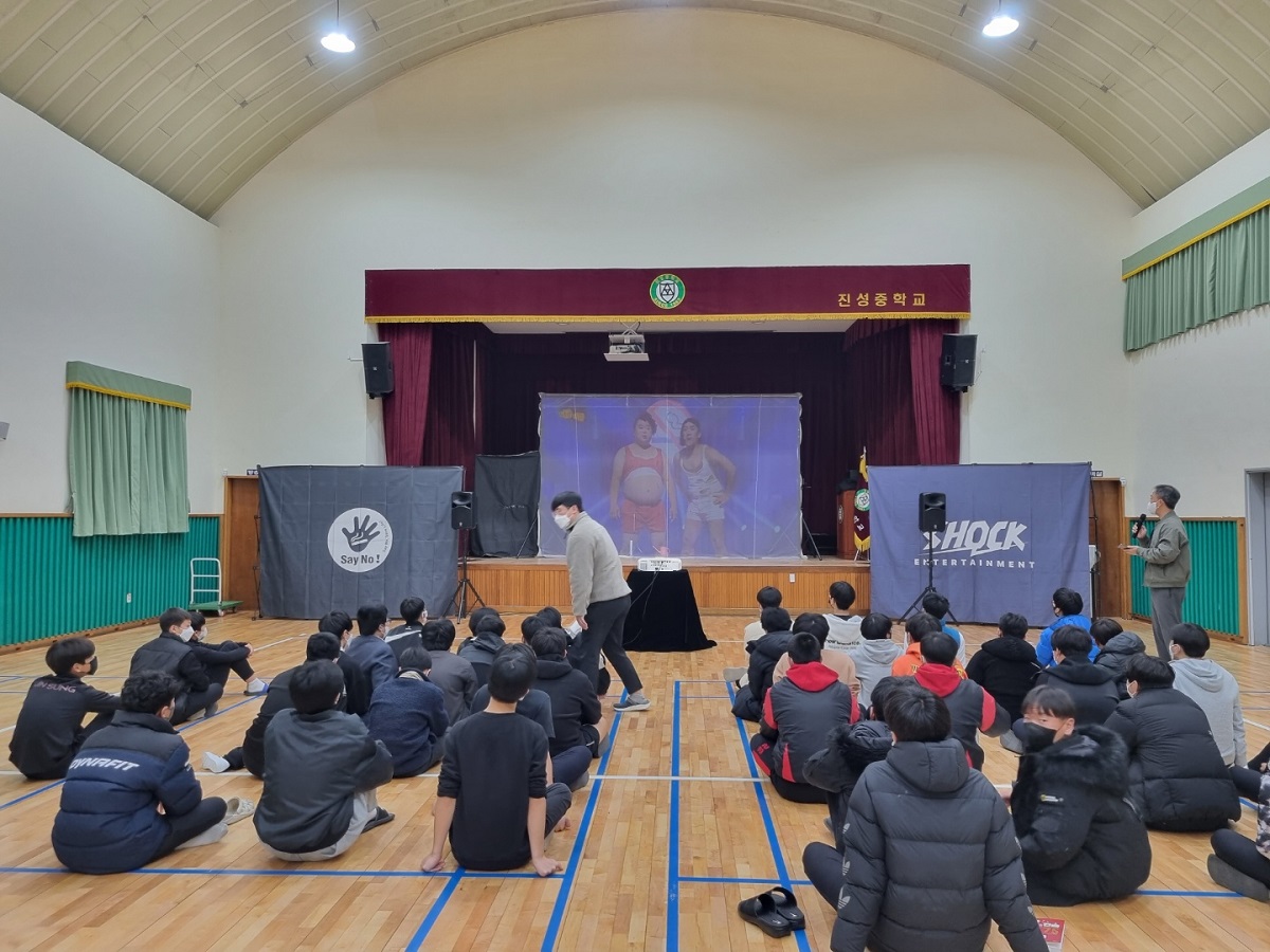 청송군 진보면 진성중학교(교장 이규흥)는 2022. 11. 1.(화) 전교생을 대상으로 쇼크 에듀 엔터테인먼트(홍종욱강사, 조항휘팀장)에서 주관하는 ‘2022년 흡연예방 홀로그램 교육’을 실시하였다.