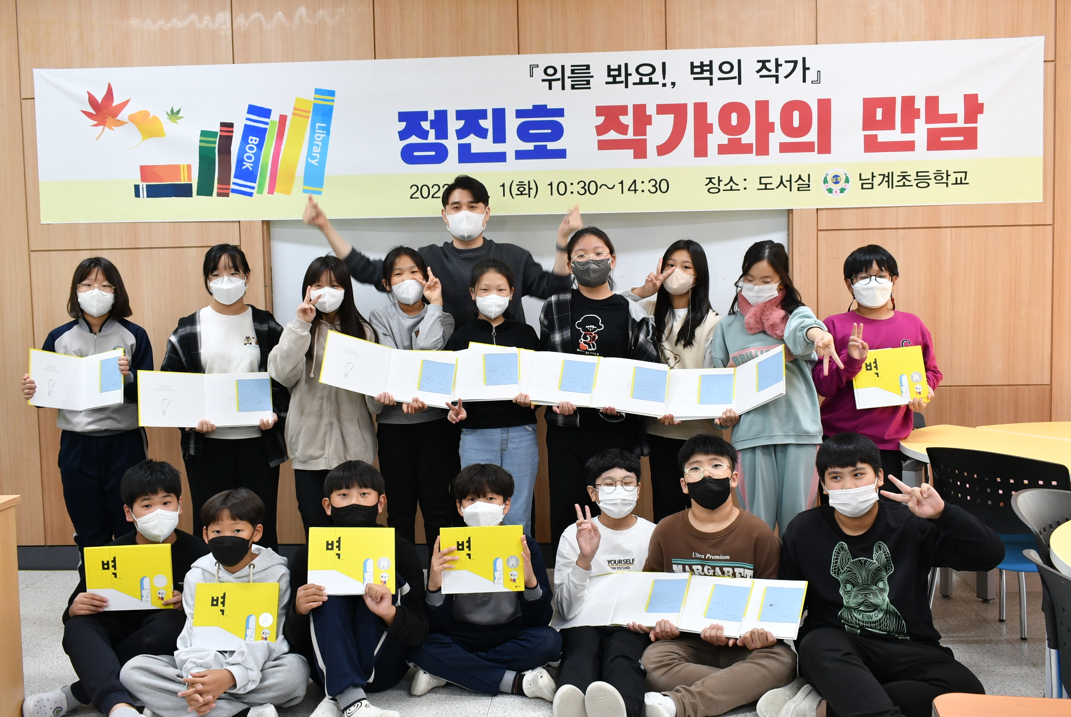 □ 이 날 행사에 참가한 남계초 학생들은 그림책을 통하여 바라보는 따뜻한 시선과 장애인의 인권, 창의적인 시각으로 사물을 바라보는 방식에 대하여 함께 알아보았다. 작가와 함께 여러 방향에서 본 모습 그리고 이야기 나누기 활동을 통하여 책 속 인물의 심리변화를 느껴보고 그림 속으로, 인물 속으로 빠져드는 즐겁고 신나는 수업이 진행되었다.