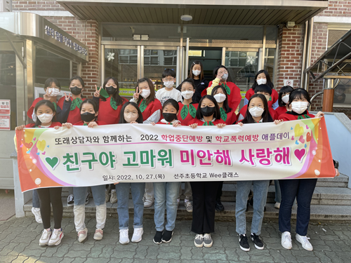 □ 선주초등학교(교장 이시백)는 10월 27일(목) 학업중단 및 학교폭력 예방을 위한 애플데이를 운영하였다. 애플데이는 둘이 서로 사과하고 화해하는 날로 친구에게 사과하고 앞으로 서로 더욱 사랑하는 친구가 되자는 뜻이 있는 날이다.