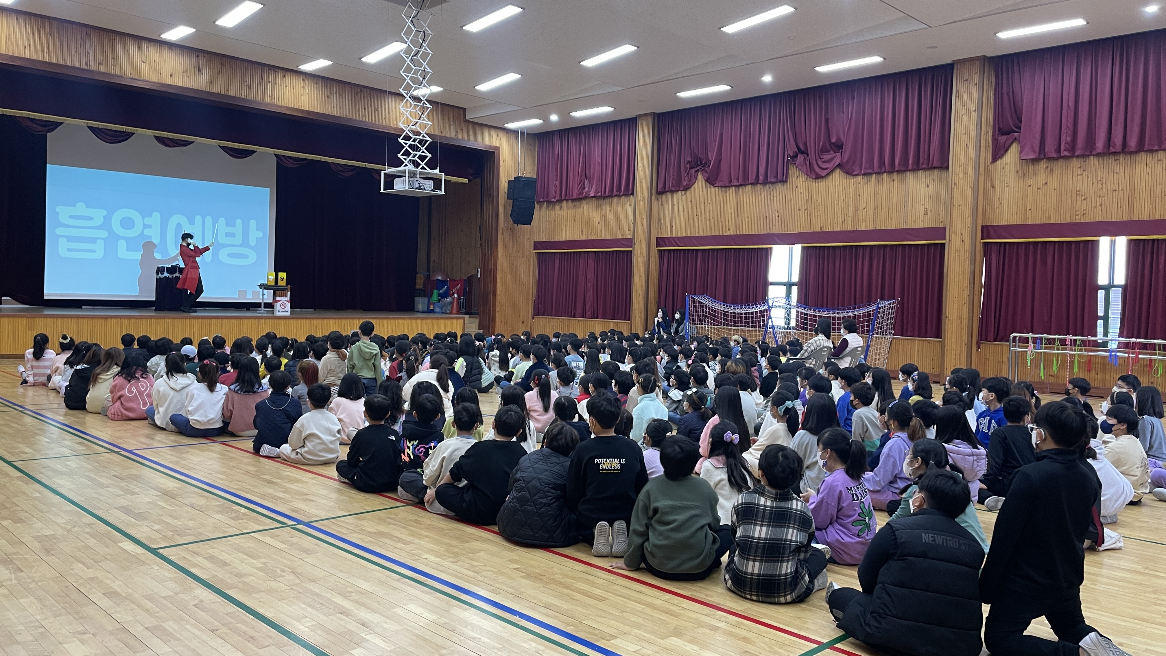 원남초등학교(교장 송혜숙)는 11월 2일 수요일 본교 강당에서 흡연예방교육 공연을 실시하였다. 이번 교육은 1, 2, 3학년 1교시(9:00~9:40) 1차시형 수업과 4,5,6학년 3~4교시(10:40~12:10) 2차시형 수업으로 이루어져 진행되었다.