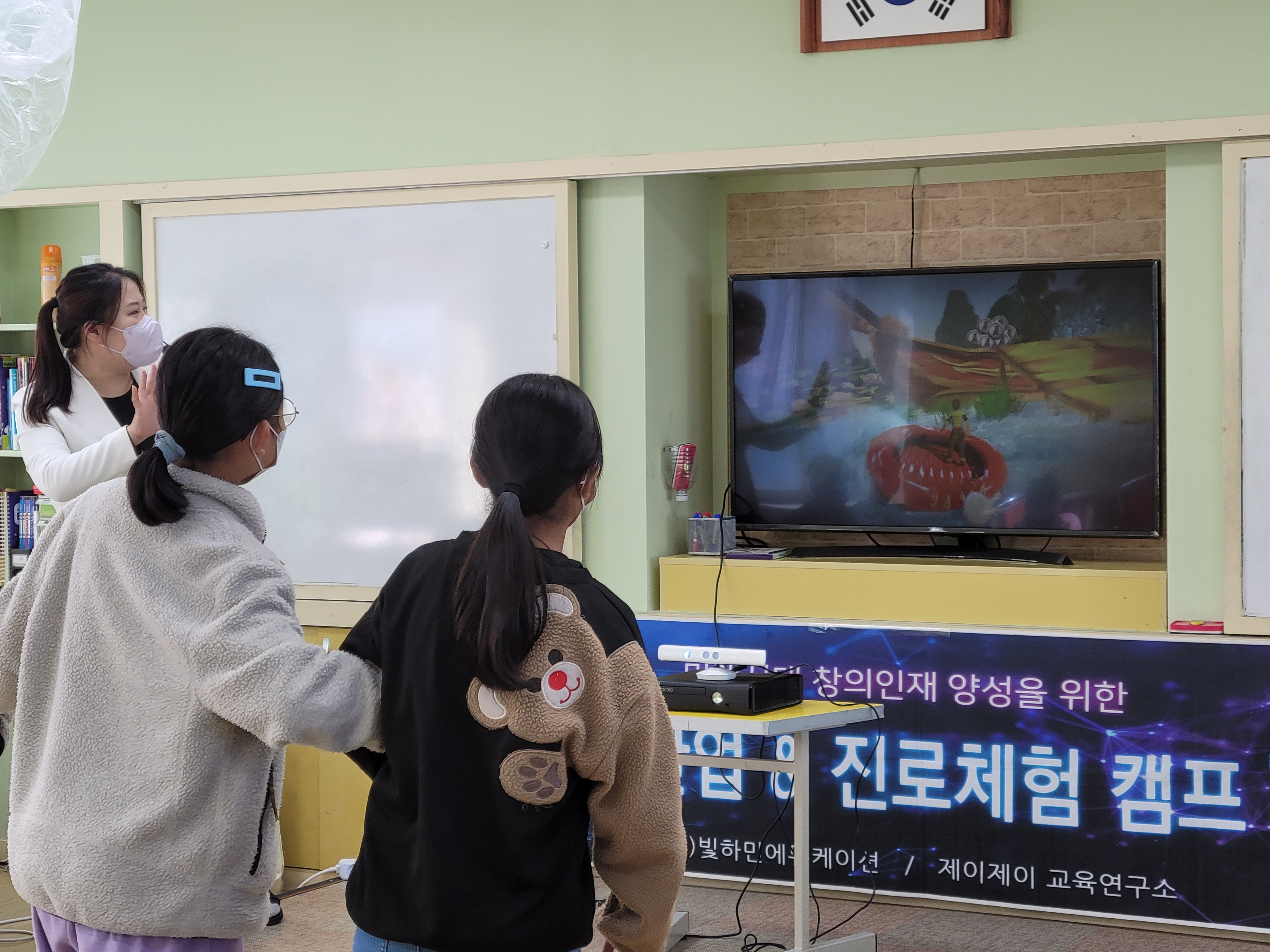 □ 다음으로는 가상현실을 체험하는 시간을 가졌다. 가상현실 ‘메타버스’에 대한 설명을 듣고 가상현실을 체험할 수 있는 ‘HMD’체험(VR고글, 카드보드)을, 핸드폰을 사용한 증강현실을 체험하였다. 신체에 대한 외형적 정보를 스캔하여 PC에 전달하는 동작 인식의 원리를 활용한 스포츠 체험은 무척이나 즐거웠다.