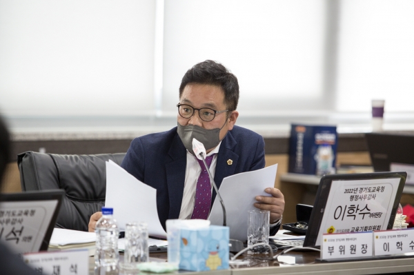 [금요저널] 경기도의회 교육기획위원회 이학수 의원은 11월 7일 경기도의회 제365회 정례회 중 김포교육지원청에서 열린 부천·양평·김포교육지원청을 대상으로 한 경기도교육청 행정사무감사에서 시·군과 대응 투자 예산 사업으로 학교 시설공사 진행 시 과도한 행정 업무 부담 문제를 제기했다.