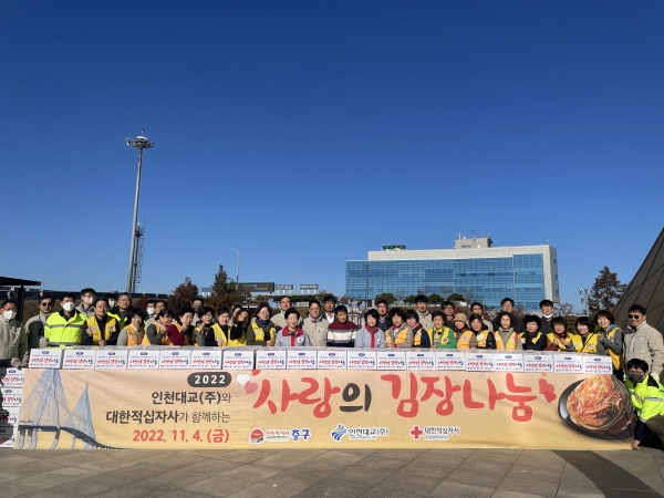 [금요저널] ㈜인천대교는 지난 4일 영종동 행정복지센터를 방문해 관내 이웃을 위해‘사랑의 김장나눔’김장김치 8kg 200박스를 기탁했다.