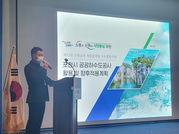 [금요저널] 포천시는 지난 3일 ‘2022 순환골재·순환골재 재활용제품 우수활용사례 발표 및 국제세미나’에서 최우수기관 표창 국무총리상을 수상해 ‘자원재활용을 통한 친환경 하수도건설’이라는 주제로 사례 발표했다.