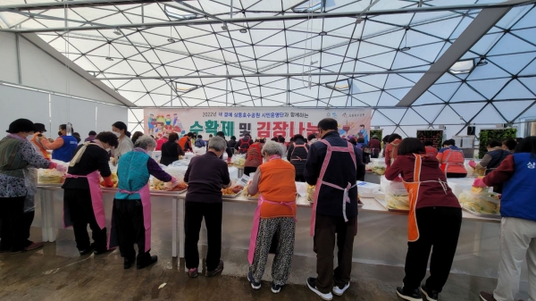 이번 행사는 상동호수공원 시민운영단 75개 단체와 지역의 홀몸 어르신, 다문화 가정, 장애인 가정 등 1,000여명이 참가해 직접 담근 김장김치를 250가정에 나누는 뜻깊은 자리로 마련됐다.