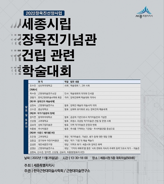 이번 학술대회는 세종시 공공미술 정책에 관심이 높은 예술가, 미술이론가, 시민 등도 참여해, 시민과 함께 만드는 ‘열린 기념관’ 조성에 의미를 더할 계획이라고 전했다.